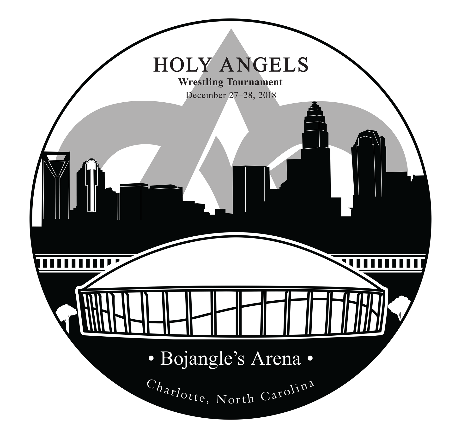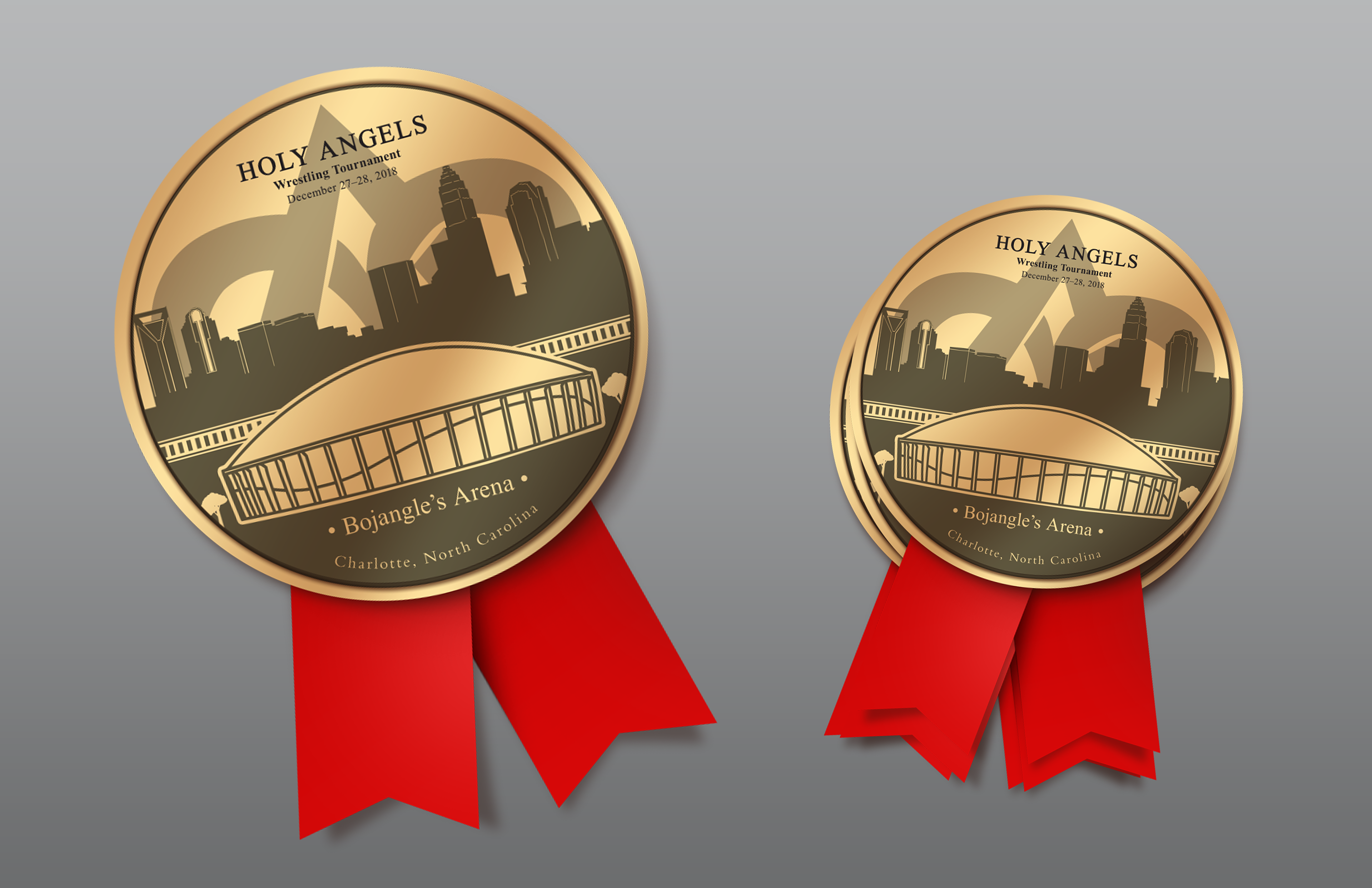 This project was designed for a local friend, a wrestling coach at a Charlotte, NC area Catholic High School, for a tournament that is hosted at the Bojangle's Arena.